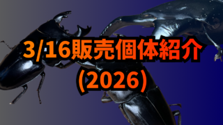 商品紹介 4/16販売個体紹介!!(2026) こんにちは、紀の喜です‼️今回は、4/16に販売開始する個体を紹介していきます‼️今回は、お得なヒラタ3種類セットを販売します😆それぞれを単体で買うよりも断然お得になっています。種類は、スマトラオオヒラタ(アチェ産),アルキデスヒラタ(アチ... 2026.04.16 商品紹介